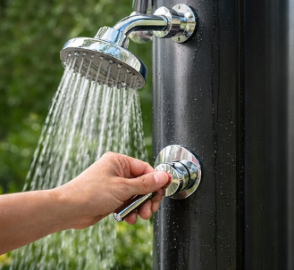 Den LY18L01 18L Utendørs hage PVC Solar dusjsøyle med sokkel har en ettgreps blandebatteri som gir brukerne nøyaktig kontroll over vanntemperaturen. Ved å blande varmt vann fra det solcelledrevne røret og kaldt vann fra hageslangen kan brukerne enkelt justere temperaturen til ønsket nivå. Enten du leter etter en rask, forfriskende skylling eller en lang, avslappende bløtlegging, sørger temperaturkontrollfunksjonen for en jevn, komfortabel opplevelse. Denne tilpasningen gjør dusjen allsidig og egnet for ulike bruksområder, inkludert etter en svømmetur, i varmt vær eller etter en lang dag med utendørsaktiviteter. Med LY18L01 kan du alltid nyte den ideelle vanntemperaturen for dine behov, og sikre ultimat komfort hver gang.