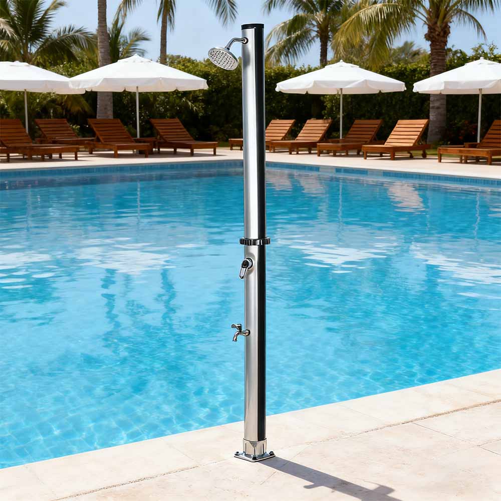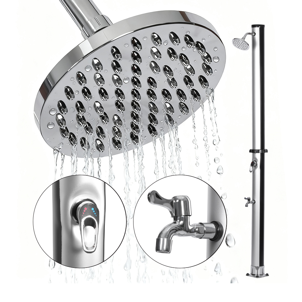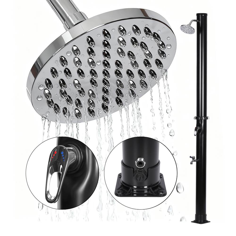 Designet for utendørs komfort, denne LY18L01 18L utendørs hage pvc solenergi dusjsøylen med base er ideell for hager, bassengområder og camping, og representerer en av de siste innovasjonene innen oppvarming av vann uten ekstern energiinngang. Den gir enkel kontroll av vanntemperaturen gjennom en ettgreps blandebatteri som blander oppvarmet dusjrørvann med kaldt slangevann, og sikrer en behagelig opplevelse. Bygget med en slitesterk PVC-base for pålitelig stabilitet og støtte, har den også et stort regndusjhode med en 180° justerbar vinkel via det integrerte kuleledd, som gir en forfriskende kjølende effekt. Oppsettet er raskt og enkelt, noe som gjør det til et praktisk tillegg til ulike utendørsinnstillinger.