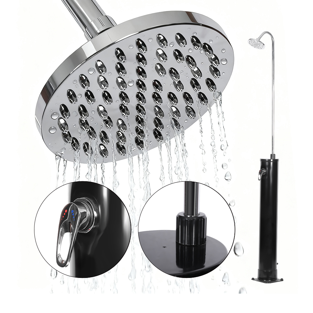 Når det utsettes for sterkt sollys, kan vannet i 18/20-liters dusjrør naturlig varmes opp til rundt 60°C uten behov for strøm, og tilbyr en praktisk og miljøvennlig dusjløsning. Bare fest en vanlig hageslange for å fylle dusjrøret med letthet. Laget av UV-bestandig plast, denne LY18L01-B 18L runde kroppen utendørs hage svømmebasseng soldusj er designet for holdbarhet og kan enkelt demonteres og transporteres ved behov. Den solide basen i rustfritt stål, PVC, ABS, kobber og metall sikrer pålitelig stabilitet, og holder enheten sikkert på plass selv ved hyppig bruk. I tillegg har den en standard hageslangekobling for rask fylling og en dreneringsplugg som gjør det enkelt å tømme dusjrøret, noe som gjør det enkelt å klargjøre dusjen for vinteroppbevaring.