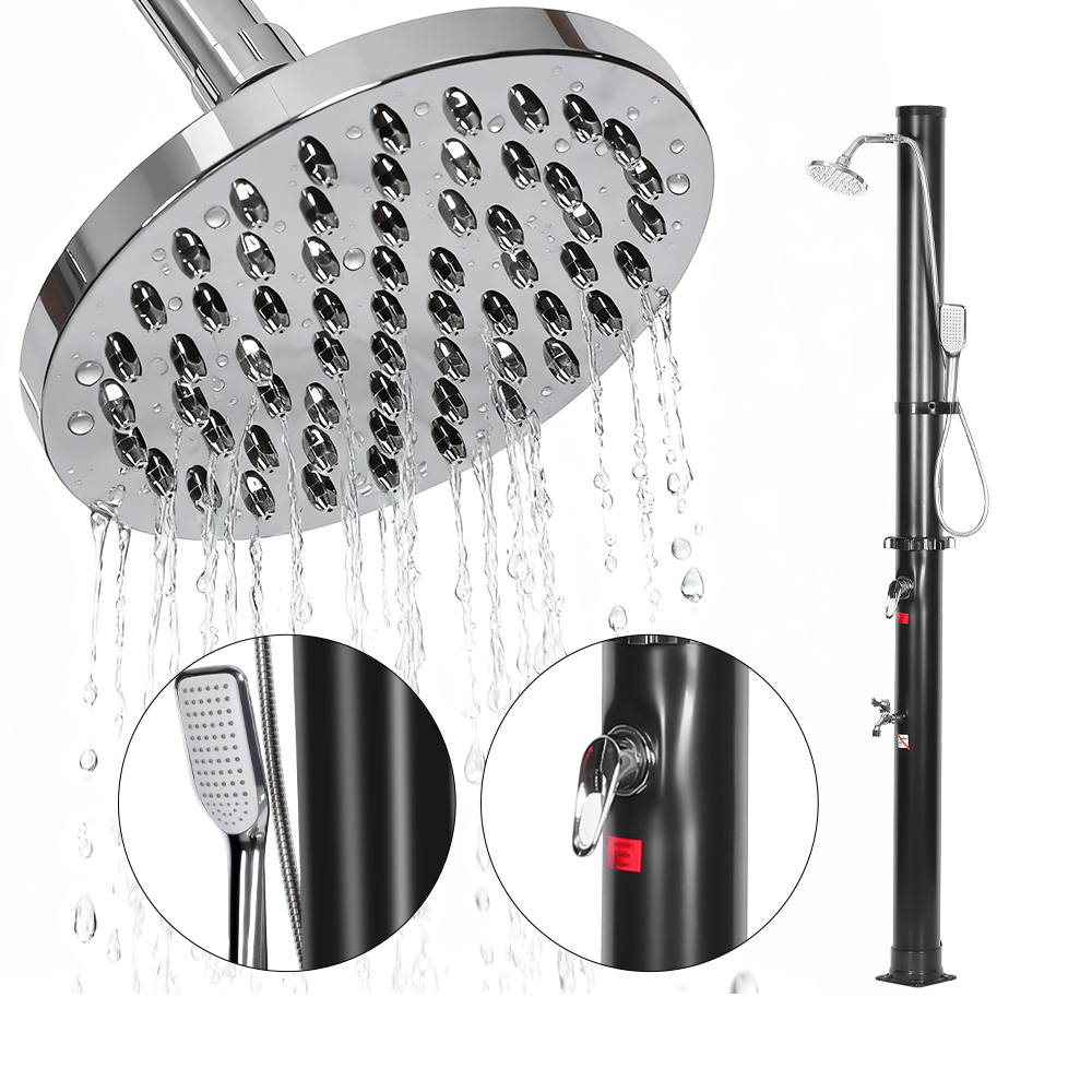 Denne LY18L05-HB 18L to-seksjon abs krom dusjhode solar dusj utendørs hage dusj inkluderer en praktisk hageslangetilkobling for enkel påfylling og en dreneringsplugg som muliggjør rask tømming når du klargjør enheten for vinteroppbevaring. Når dusjrøret er fylt, varmes vannet naturlig opp ved hjelp av solenergi, og det integrerte blandebatteriet gjør det enkelt å justere vannet til din foretrukne temperatur for en behagelig dusjopplevelse. Alle komponenter er forsvarlig festet med skruer for å sikre holdbarhet, og for sikker drift må dusjen være forsvarlig forankret til bakken. Tydelige, flerspråklige instruksjoner er gitt for å veilede deg gjennom installasjon og bruk, noe som gjør oppsettprosessen enkel og pålitelig.