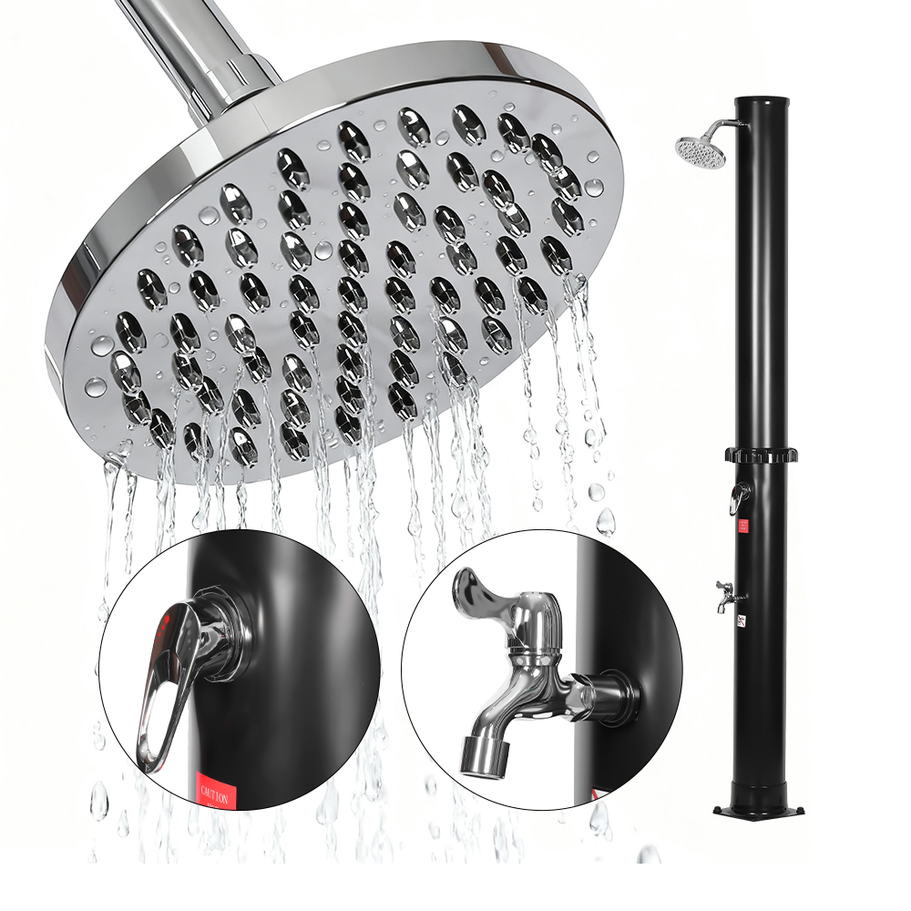 Denne LY35L01 utendørs hagedusjen med dusjrør med stor kapasitet er designet for familievennlig utendørsbruk, og har et sjenerøst stort dusjrør som kan varme opp vannet til rundt 60°C i sterkt sollys uten å kreve strøm. Bare koble til en standard hageslange for å fylle dusjrøret, og alle kan nyte en forfriskende dusj i hagen, ved bassenget eller på en campingplass. For ekstra bekvemmelighet inkluderer den et innebygd metallbrett for å holde dusjsåpe eller andre småting innen rekkevidde, mens et dreneringshull i bunnen sørger for jevn vannstrøm og forhindrer stående vann. Når den ikke er i bruk, kan dusjen enkelt demonteres for kompakt oppbevaring, noe som gjør den praktisk for sesongmessig bruk eller transport til forskjellige steder.