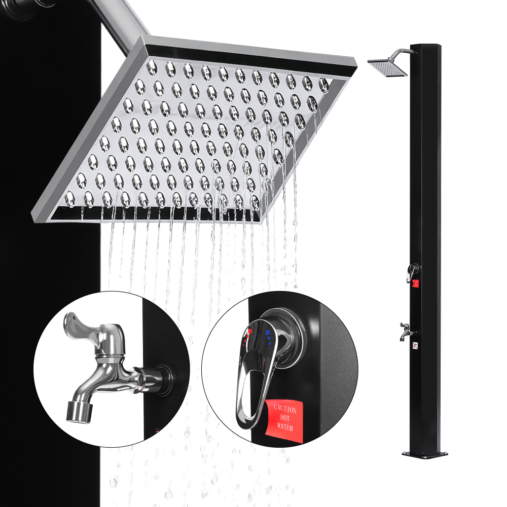 Med sitt sjenerøst dimensjonerte dusjrør varmer denne LY35L05-SS praktiske soldusjen mot vannopphopning effektivt vann opp til 60°C under fullt sollys, og eliminerer behovet for elektrisitet og gjør den ideell for bærekraftig utendørsbruk. Bare fest en standard hageslange for å fylle dusjrøret, og hele familien kan nyte en forfriskende og behagelig dusjopplevelse i hagen, ved bassenget eller til og med på en campingplass. Et gjennomtenkt integrert metallbrett gir et praktisk sted for å holde dusjsåpe og andre nødvendigheter innen rekkevidde, mens dreneringshull i bunnen sørger for jevn vannstrøm og forhindrer oppsamling. I tillegg er dusjen designet for enkel demontering, slik at den kan oppbevares kompakt når den ikke er i bruk, noe som gjør den spesielt praktisk for lagring og transport utenom sesongen.
