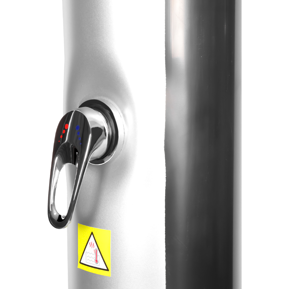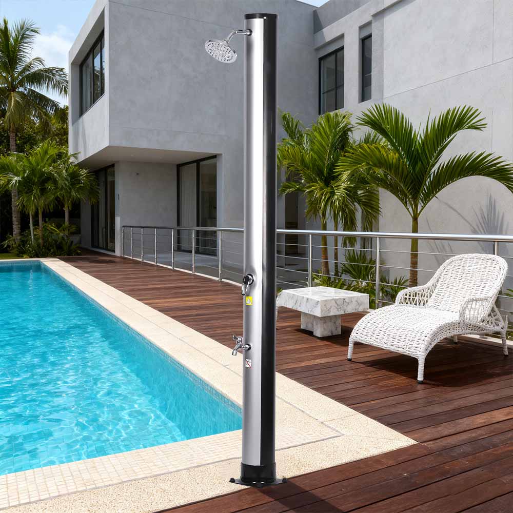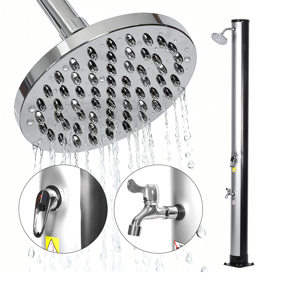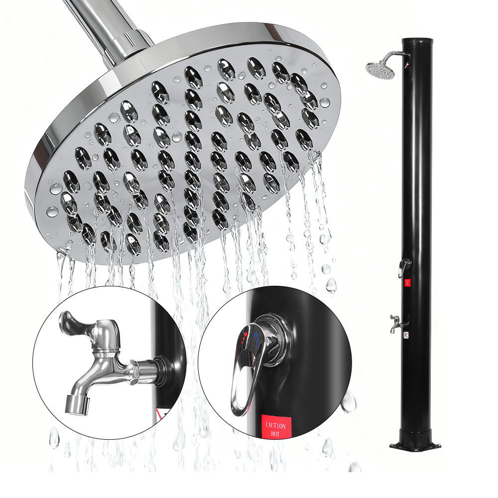 Det sjenerøse dusjrøret til denne LY35L06 bærbare utendørs miljøvennlige soldusjen utnytter solens kraft til å varme vann opp til 60°C, krever ingen strøm og tilbyr en miljøvennlig løsning for utendørs bading. Bare koble til en standard hageslange for å fylle dusjrøret, og hele familien kan nyte en revitaliserende dusj i hagen, ved bassenget eller på campingtur. Et praktisk innebygd metallbrett holder dusjnødvendigheter som såpe og sjampo innen rekkevidde, mens dreneringsåpninger i bunnen hindrer vann i å samle seg, noe som sikrer en ren og behagelig opplevelse. Det 360° roterbare regndusjhodet, montert på et integrert kuleledd, lar deg justere vannstrømningsretningen med letthet, og skaper en behagelig avkjølende følelse, mens den ekstra fotskyllekranen gir en praktisk måte å friske opp raskt. Denne dusjen er designet for bekvemmelighet og kan enkelt demonteres for kompakt, plassbesparende oppbevaring i lavsesongen eller for transport når du reiser.