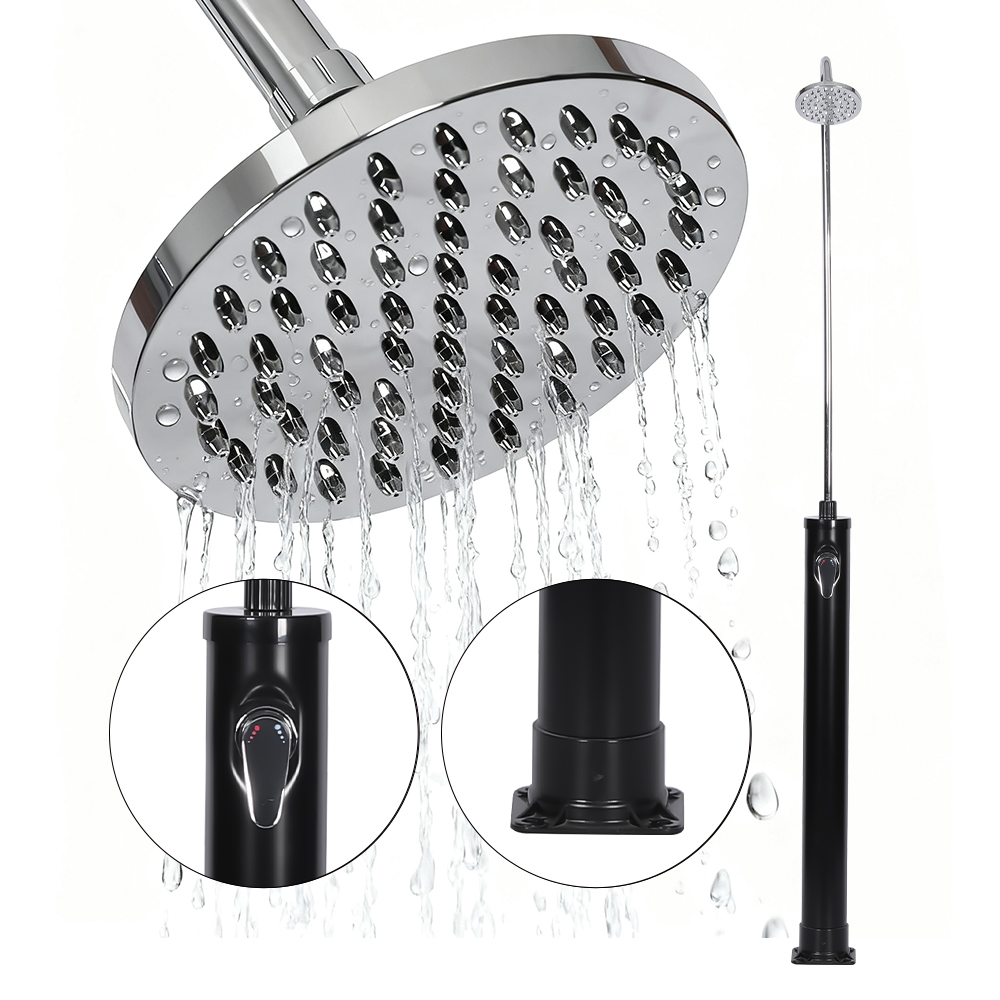 Denne LY08L02 8L svømmebassenger utendørs solenergi hagedusj er en ideell løsning for utendørs bruk, enten det er i hagen, ved bassenget eller på campingturer. Den drives utelukkende av sollys, og har et 8-liters dusjrør som varmer vann opp til 60°C, uten behov for strøm. Systemet er designet for å være brukervennlig, med et ettgreps blandebatteri i metall som blander varmt vann fra dusjrøret med kaldt vann fra hageslangen, noe som muliggjør jevn og kontinuerlig temperaturjustering. Den solide basen i rustfritt stål sikrer at enheten forblir stabil og sikkert på plass, og gir pålitelig ytelse for dine utendørs vannbehov. Bare koble til en standard hageslange for å fylle dusjrøret og nyt varmt vann uansett hvor du er.